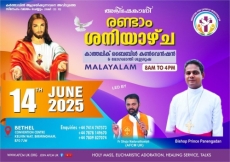 അഭിഷേകാഗ്നി രണ്ടാം ശനിയാഴ്ച്ച മലയാളം ബൈബിള് കണ്വെന്ഷന് 14ന് നാളെ ബര്മിങ്ഹാം ബെഥേല് സെന്റെറില് നടക്കും.ഷംഷാബാദ് സീറോ മലബാര് രൂപത ബിഷപ്പ് മാര് പ്രിന്സ് പാണേങ്ങാടന് മുഖ്യ കാര്മ്മികത്വം വഹിക്കും ., അഭിഷേകാഗ്നി കാത്തലിക് മിനിസ്ട്രി യുകെ യുടെ നേതൃത്വം ഫാ.ഷൈജു നടുവത്താനിയില് കണ്വെന്ഷന് നയിക്കും . കുട്ടികള്ക്കും കുടുംബങ്ങള്ക്കും വേണ്ടിയുള്ള ഈ