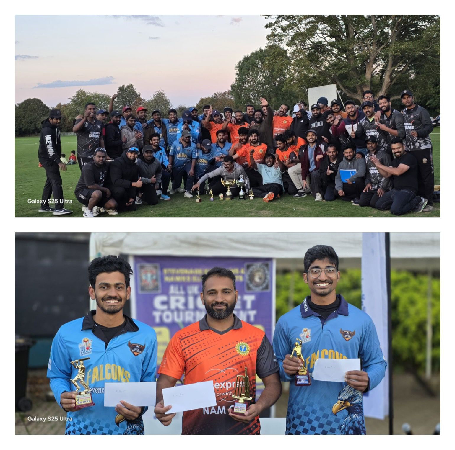 വെടികൊട്ട് ബാറ്റിങ്കൊണ്ടും, കൃത്യമായ ബൗളിങ്ങും, ഫീല്ഡിങ്ങുമായി ടൂര്ണമെന്റിലെ ഇഷ്ട ടീമായി മാറിയ തണ്ടേഴ്സ് ഫാല്ക്കണ്സ്, വിജയികള്ക്കുള്ള ആയിരത്തി ഒന്ന് പൗണ്ട് കാഷ് പ്രൈസും, ട്രോഫിയും കരസ്ഥമാക്കി. റണ്ണറപ്പായ നോര്വിച്ചില് നിന്നുള്ള 'നാം' അഞ്ഞൂറ്റി ഒന്ന് പൗണ്ട് കാഷ് പ്രൈസും, ട്രോഫിയും നേടി.