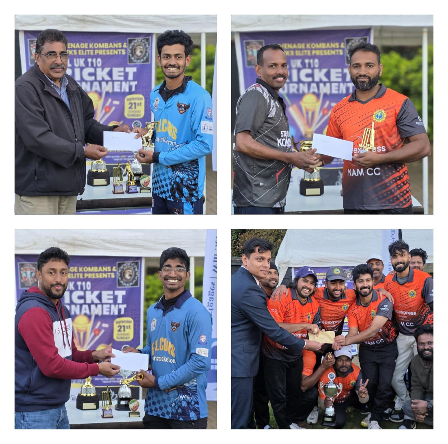 മൂന്നു മത്സരങ്ങളില് നിന്നും 80 റണ്സും, 6 ഓവറുകളിലായി 38 റണ്ണിന് 5 വിക്കറ്റും നേടിയ 'നാം' നോര്വിച്ചിലെ അജേഷ് ജോസ് ടൂര്ണമെന്റിലെ മികച്ച ഓള്റൗണ്ടറായി. മൂന്നു മത്സരങ്ങളിലായി 146 റണ്സ് അടിച്ചെടുത്ത് തണ്ടര്സ് ഫാല്ക്കന്സിലെ മഹിമ കുമാര് ഫൈനല് മത്സരത്തിലെ മാന് ഓഫ് ദി മാച്ചിനും, മികച്ച ബാറ്സ്മാനുമുള്ള ട്രോഫിയും കാഷ് പ്രൈസും നേടി. 5 ഓവറില് 33 റണ്സ് വഴങ്ങിക്കൊണ്ട് 5 വിക്കറ്റ് എടുത്ത തണ്ടേഴ്സ് ഫാല്ക്കന്സിലെ ഗോപീ കൃഷ്ണ ബൗളര് ഓഫ് ദി ടൂര്ണ്ണമെന്റിനുള്ള കാഷ് പ്രൈസും, ട്രോഫിയും നേടി.